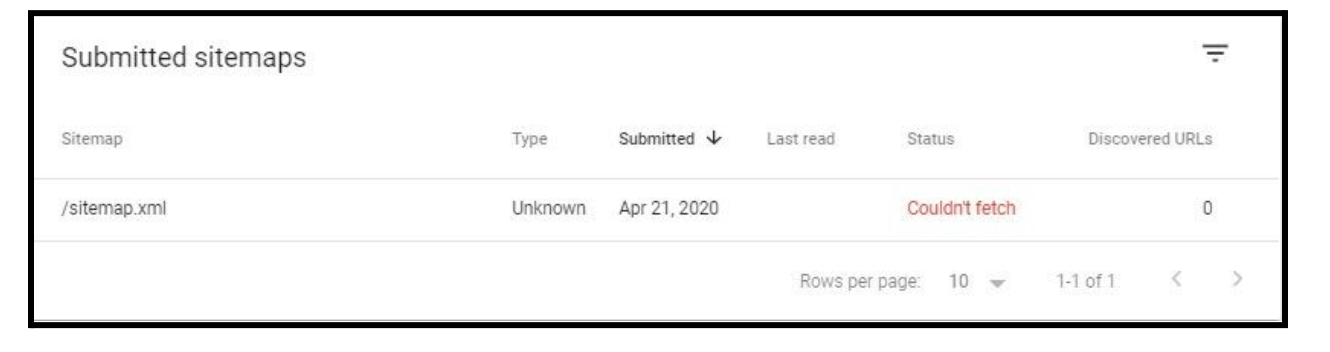 - Couldn’t Fetch – Google could not fetch the sitemap, likely due to an HTTP error or robots.txt block.