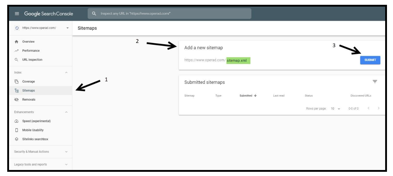 - Navigate to the “Sitemaps” section under the “Index” tab.