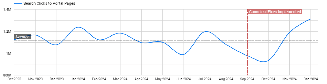 By addressing the canonical tag issue on the /portal/ pages, we demonstrated how small technical fixes can lead to substantial improvements in organic search performance.