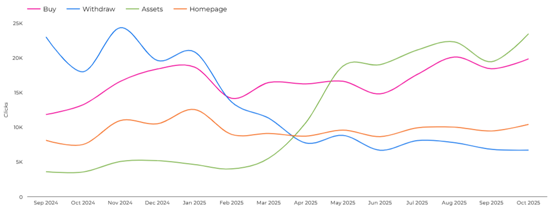 Redirected the content roadmap toward Buy pages for specific coins. Asset pages showing how to store coins securely. Landing pages built around clear user actions. Restructured internal linking to push users toward action-based flows instead of informational dead ends.