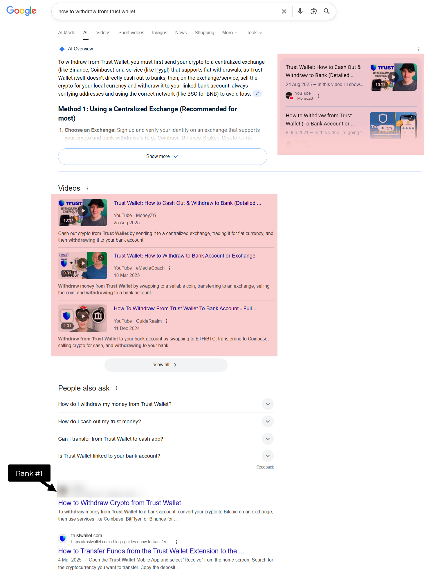 Study how Google serves answers. Look at the SERP for your target queries. Which elements is Google prioritizing? AI Overview, video carousel, PAA, organic? Find the gaps. Figure out where you can squeeze in.